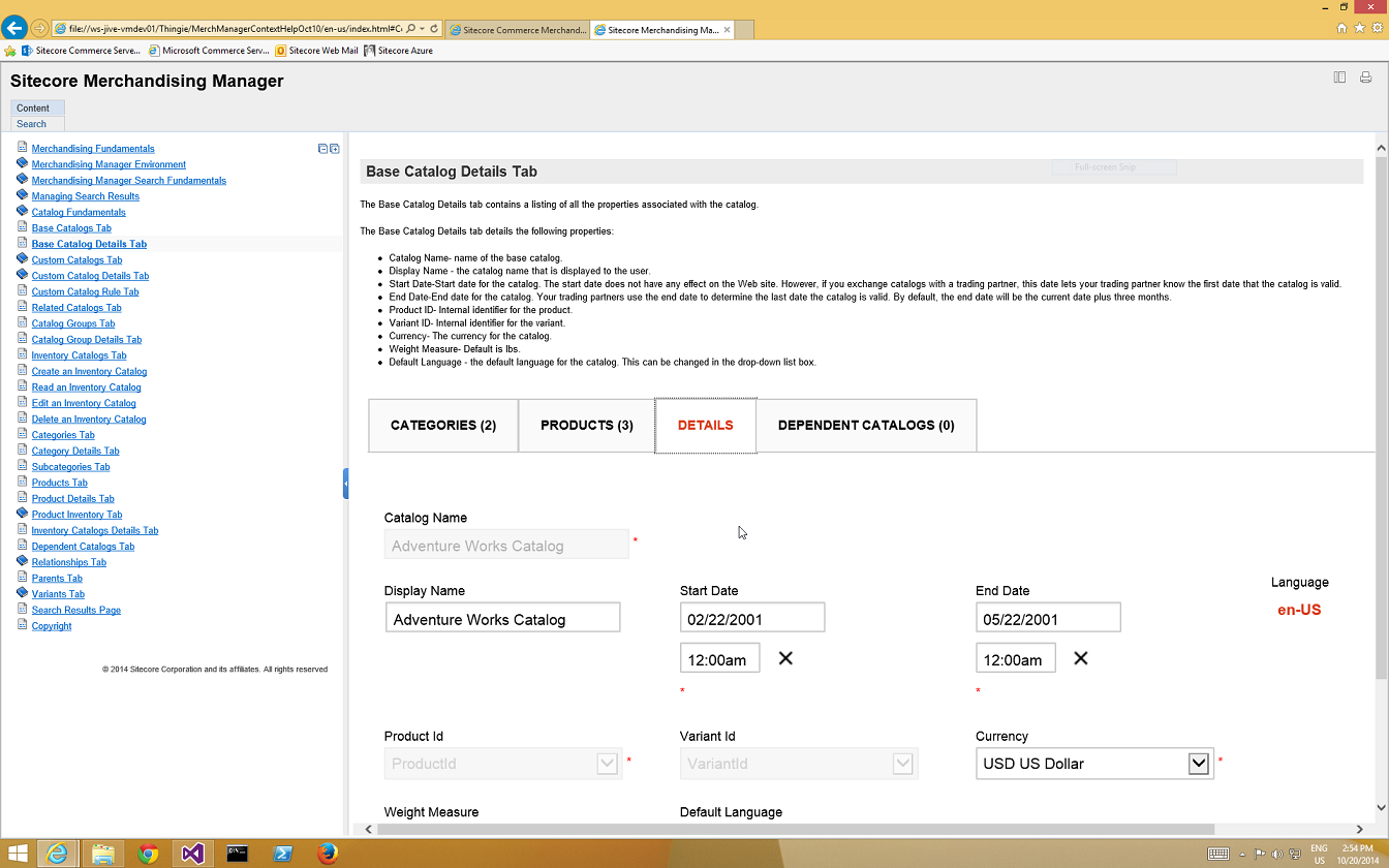 - Start Date-Start date for the catalog. The start date does not have any effect on the Web